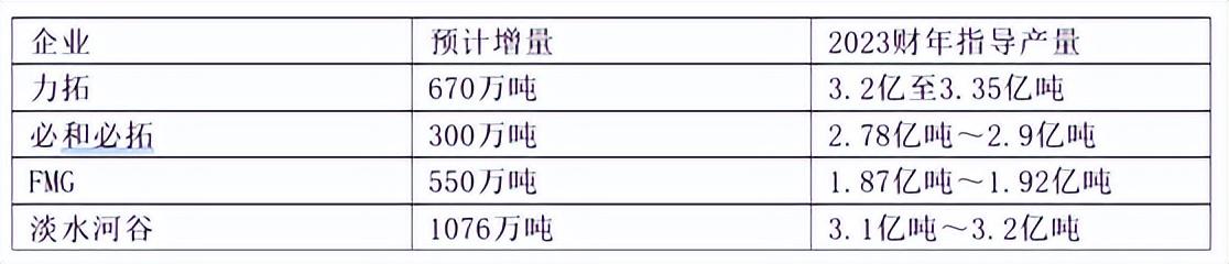 供應(yīng)端,對(duì)力拓、必和必拓、淡水河谷、FMG四大寡頭的2023財(cái)年鐵礦石產(chǎn)量指導(dǎo)情況來(lái)看,預(yù)計(jì)2023年四大礦山鐵礦石產(chǎn)銷量不減反增,增加約2600萬(wàn)噸。根據(jù)發(fā)往中國(guó)比例估算,對(duì)國(guó)內(nèi)增量約為2000萬(wàn)噸。