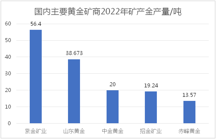 2022年,招金礦業(yè)礦產(chǎn)黃金19.24噸,中金黃金2022年前三季度礦產(chǎn)金產(chǎn)量為14.9噸,全年預計約19-20噸,赤峰黃金上一年度實際完成黃金產(chǎn)量13.57噸,首次突破10噸。招金和中金、赤峰黃金,形成了國內黃金產(chǎn)量的第二梯隊。