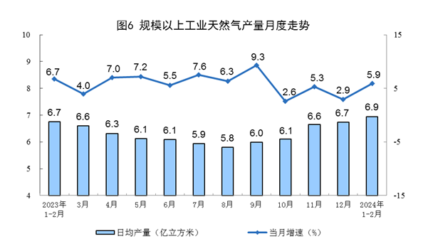 天然氣生產(chǎn)增速加快,進口保持較快增長。1—2月份,規(guī)上工業(yè)天然氣產(chǎn)量417億立方米,同比增長5.9%。進口天然氣2210萬噸,同比增長23.6%,增速比上年12月份放緩0.1個百分點。