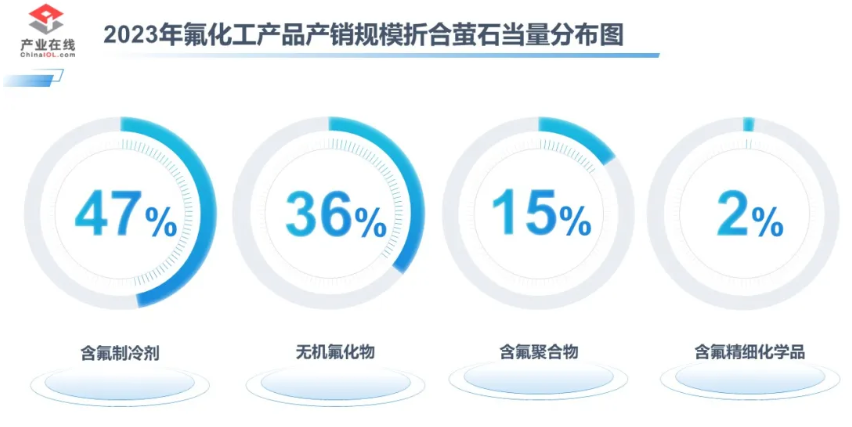 2023年含氟制冷劑產(chǎn)銷規(guī)模折合螢石當(dāng)量約235.7萬噸,消費(fèi)占比47%。含氟制冷劑應(yīng)用于冰箱、空調(diào)、冷庫等制冷設(shè)備,另外部分含氟制冷劑單質(zhì)也是含氟高分子材料的主要原材料。