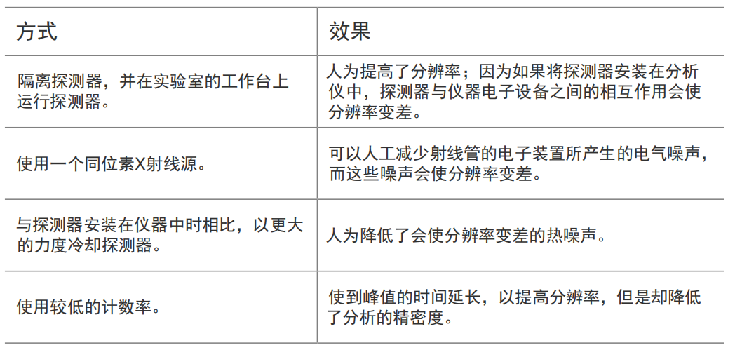 在比較不同的分析產(chǎn)品時(shí),某些供應(yīng)商會(huì)強(qiáng)調(diào)打動(dòng)人心的分辨率數(shù)值,但是這些數(shù)值的背后往往掩蓋了更多的事實(shí)。在許多情況下,這些供應(yīng)商只是援引了制造X射線探測(cè)器的公司提供給他們的分辨率數(shù)值。而探測(cè)器制造商一般是在理想條件下、隔離的環(huán)境中測(cè)量分辨率。如果想要了解分析儀在實(shí)際操作條件下的性能,就要看在實(shí)際操作條件下,X射線探測(cè)器已被安裝在分析儀中時(shí)所匯報(bào)的分辨率。