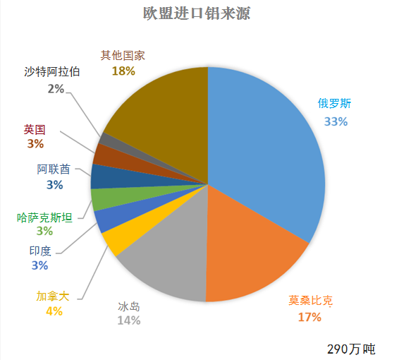 不同的是,原鋁進口主要來自俄羅斯,同期年均33%的原鋁進口來自俄羅斯。其他的主要供應(yīng)國為莫桑比克,占17%,冰島另外占14%。