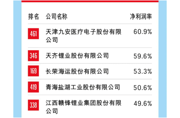 盈利排行,自然少不了鋰資源企業(yè)。