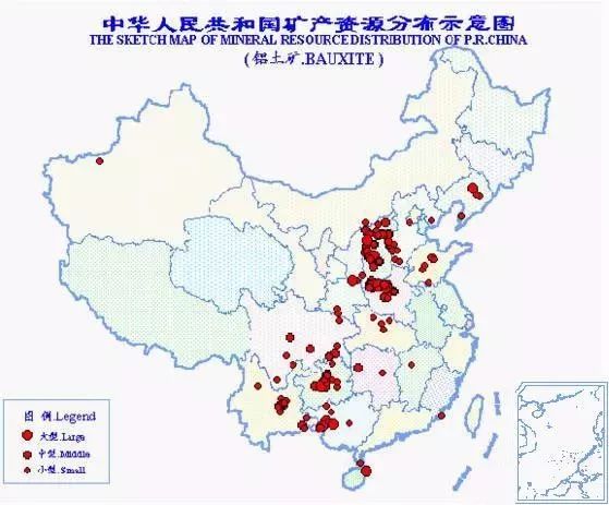 中國鋁土礦資源豐度屬中等水平,產(chǎn)地310處,分布于19個省(區(qū))??偙S袃α康V石22.7億噸,居世界第7位。