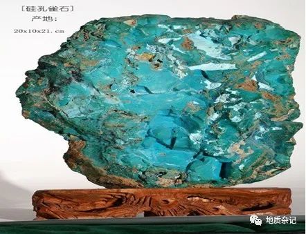 硅孔雀石又名鳳凰石,是水合銅硅酸鹽礦物,為一種次生的含銅礦物。在很多銅礦地區(qū)都會(huì)存在這種由銅礦分解而成的礦物,主要產(chǎn)在含銅礦床的氧化帶中,常與孔雀石、藍(lán)銅礦、赤銅礦,自然銅共生。這是因?yàn)殂~礦遇到含二氧化硅的水而發(fā)生化學(xué)變化而產(chǎn)生的。此外,也常和玉髓相伴一起出現(xiàn),為部分藍(lán)色或綠色玉髓的重要內(nèi)含物。