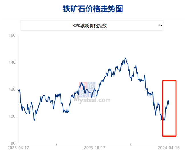 自清明節(jié)后,鐵礦石價格表現(xiàn)強勁。截止4月16日,Mysteel鐵礦石62%澳粉指數為109.25美元/干噸,雖然下跌3.1美元/干噸,但仍較節(jié)前最后一個工作日上漲9.9美元/干噸,漲幅為9.96%。市場情緒明顯好轉,鐵礦石價格反彈,漲幅超大家預期,鐵礦石的春天是否到來了?
