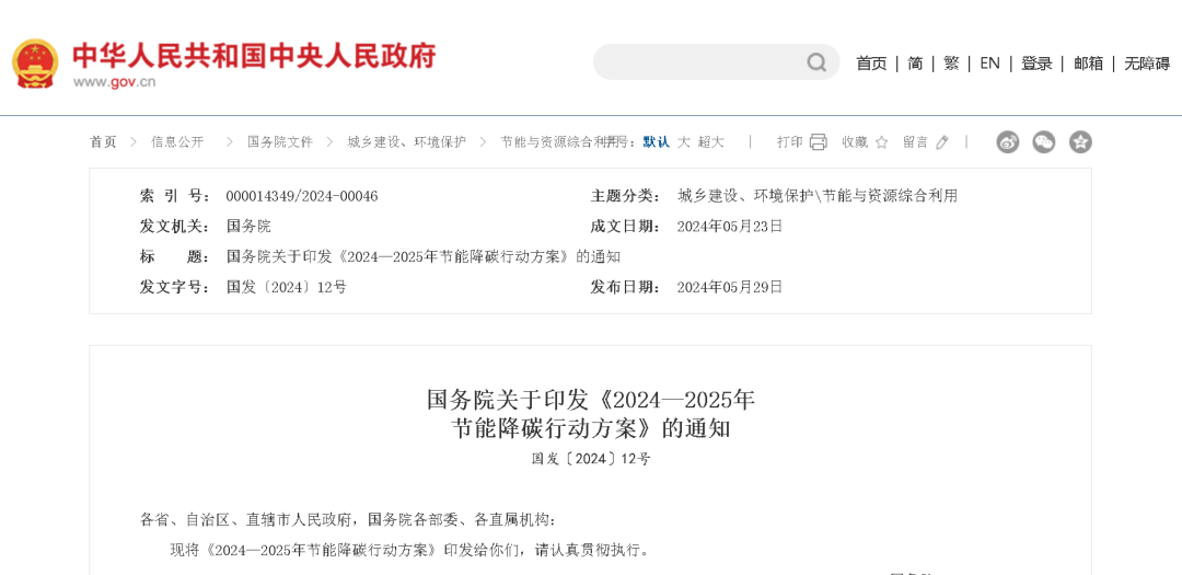 為貫徹落實(shí)黨中央、國(guó)務(wù)院決策部署,錨定“十四五”節(jié)能降碳目標(biāo)任務(wù),加大節(jié)能降碳攻堅(jiān)力度,分領(lǐng)域分行業(yè)實(shí)施節(jié)能降碳專(zhuān)項(xiàng)行動(dòng),更好發(fā)揮節(jié)能降碳的經(jīng)濟(jì)效益、社會(huì)效益和生態(tài)效益,為實(shí)現(xiàn)碳達(dá)峰碳中和目標(biāo)奠定基礎(chǔ),國(guó)家發(fā)展改革委會(huì)同有關(guān)方面研究起草了《2024—2025年節(jié)能降碳行動(dòng)方案》,經(jīng)國(guó)務(wù)院常務(wù)會(huì)議審議通過(guò)后,近日由國(guó)務(wù)院印發(fā)。