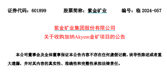 2024年10月9日,紫金礦業(yè)宣布擬出資10億美元(約70.71億人民幣)收購(gòu)紐蒙特全資子公司Newmont Golden Ridge Ltd的100%股權(quán),拿下加納Akyem金礦項(xiàng)目的全部權(quán)益。這是紫金礦業(yè)自2020年以來(lái)的第7宗金礦并購(gòu),標(biāo)志著公司在全球金礦布局的持續(xù)加強(qiáng)。Akyem金礦擁有黃金資源量54.4噸,儲(chǔ)量約34.6噸,年均產(chǎn)金約5.8噸。
