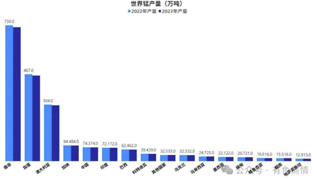 中國(guó)錳礦儲(chǔ)量2.8億噸,排名全球第三位,這些錳礦資源主要集中于南方地區(qū),像廣西、湖南、云南、貴州、重慶、湖北等省區(qū)是我國(guó)錳礦資源的主要聚集地。然而,我國(guó)錳礦資源在品位方面存在明顯短板,平均品位約為21%,富礦(氧化錳礦 Mn>130.00%、碳酸錳礦石 Mn≥25.00%)僅占全國(guó)總儲(chǔ)量的 6.43%,貧錳礦卻占到了 93.60%。
