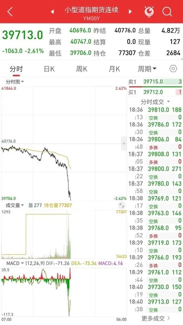 在中方連環(huán)反制之下,美指期貨應(yīng)聲下跌超千點(diǎn)。