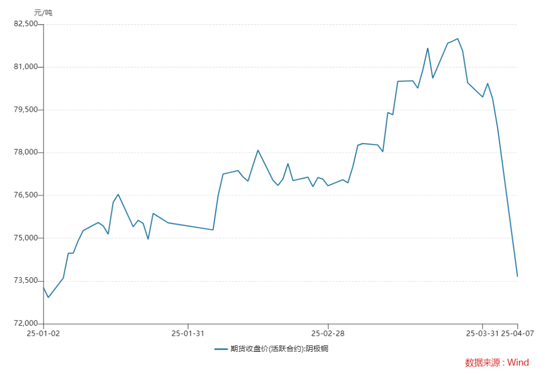 就在兩周前還在市場(chǎng)中炙手可熱的“明星”——銅,在清明節(jié)遭遇“滑鐵盧”。國(guó)外方面,近期倫敦金屬交易所(LME)銅價(jià)沖上1萬(wàn)美元/噸高位后,掉頭向下,4月4日盤中跌至8644美元/噸;紐約商品交易所(COMEX)銅期貨價(jià)格也是連續(xù)兩個(gè)交易日大跌,4月4日收于4.38美元/磅。國(guó)內(nèi)方面,截至4月7日收盤,滬銅主力合約最低已觸及73640元/噸,較前一交易日下跌5550元,跌幅達(dá)7.01%。