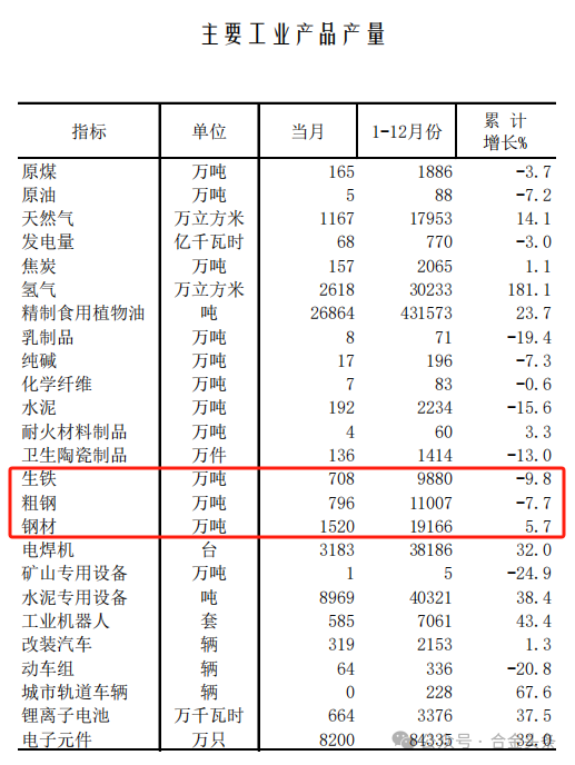 ○生產(chǎn)端呈現(xiàn) “減量提質” 態(tài)勢:生鐵9880萬噸(-9.8%)、粗鋼11007萬噸(-7.7%)、鋼材19166萬噸(+5.7%)。