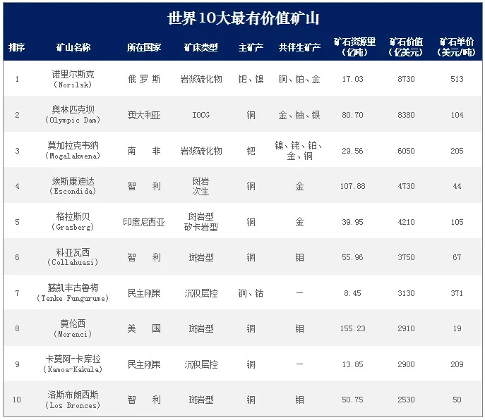 2022年全球最具有價(jià)值最高的十座礦山有哪些