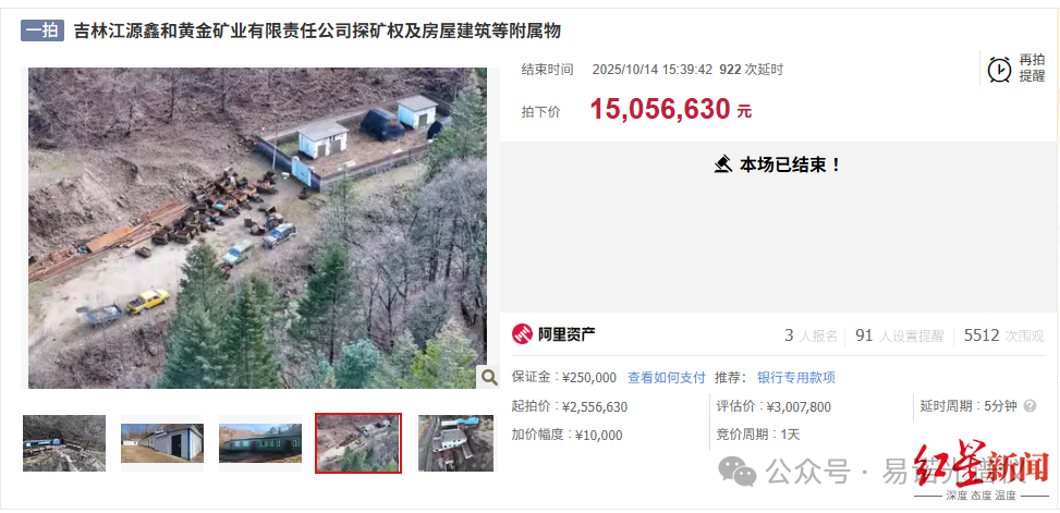 成交價(jià)1500萬元:出價(jià)931輪,溢價(jià)率達(dá)489%!吉林一金礦探礦權(quán)等被拍賣